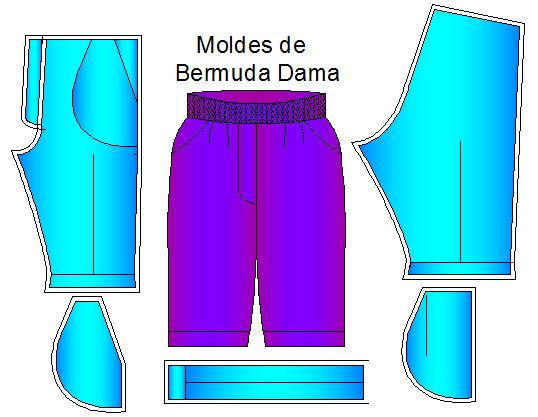 Moldes Completos de Bermudas para mujer bolsas rectas a la cintura y con pretina. |