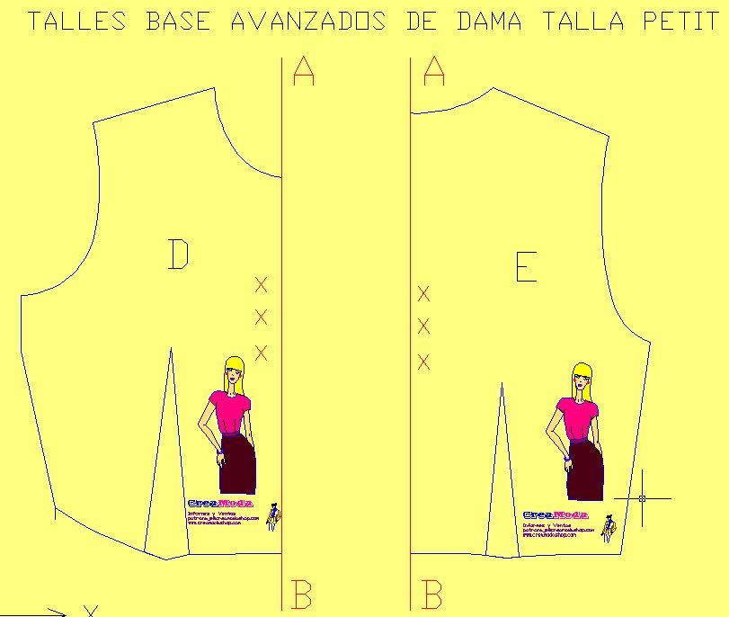 2. Los Moldes Base Avanzados de talles delantero y talles espalda listos para imprimir en tamaño natural ( full size ) y transformar en las 5 Tallas Comerciales Petit - Chica - Mediana - Grande - Extra Grande.